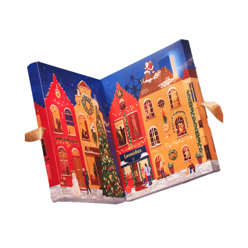 Calendar Advent Book Leonidas, în formă de carte care se deschide, cu 24 de praline asortate. Un cadou de sezon care încântă atât pe cei mici, cât și pe cei mari: bucuria de a descoperi, zi de zi până la Crăciun, un dar dulce. Punga cadou Leonidas și hârtia de mătase sunt incluse.