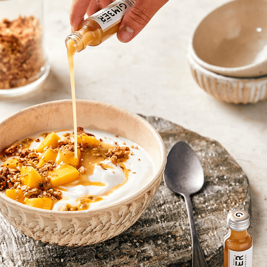 Descoperă GIMBER, un concentrat premium din ghimbir organic proaspăt, cu lămâie, plante aromatice și condimente atent alese, creat pentru cei care caută o alternativă sănătoasă și plină de savoare la băuturile clasice.