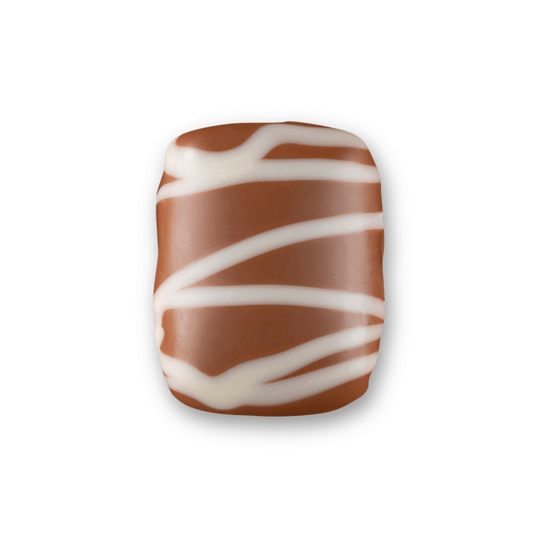 Un mozaic de texturi și arome. Această pralină este făcută dintr-un înveliș de ciocolată cu lapte cu dungi de ciocolată albă, umplută cu o cremă pralinată delicioasă și crocantă îmbogățită cu bucăți crocante din unt pur 100%. O pralină memorabilă, care aduce un tribut ciocolatei belgiene adevărate. Gramaj pralină: 12g.