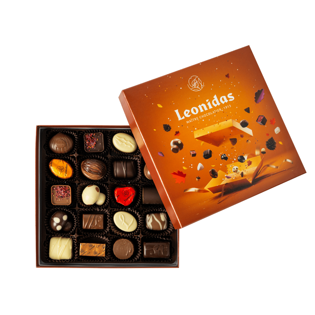 Cadoul este completat de pungă cadou Leonidas și hârtie de mătase. Imaginea are caracter orientativ; sortimentul de praline poate varia.